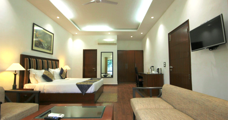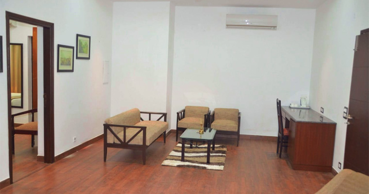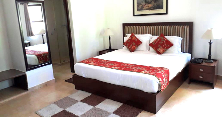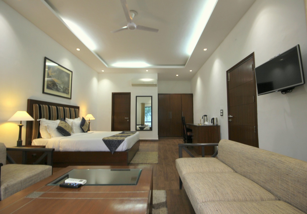 For a more expansive experience, the suites offer two-room apartments with one attached bath, featuring a bedroom and a living-cum-drawing room. The large terrace provides stunning views of the surroundings.